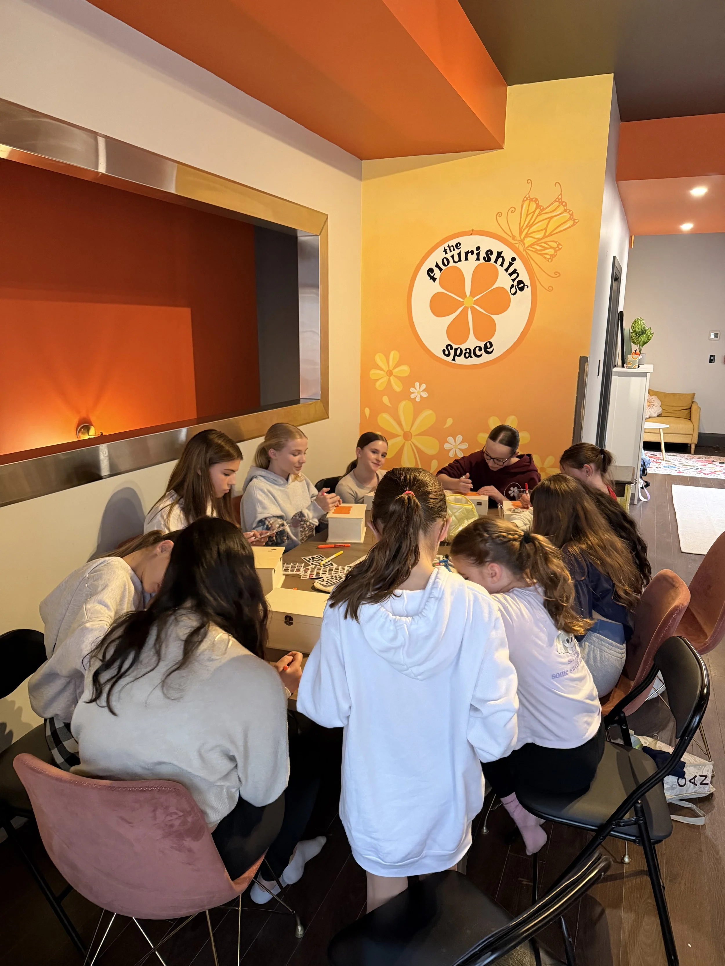 The Flourishing Space is designed to feel like a home away from home—a place where comfort meets connection. With a cozy, welcoming atmosphere and warm, inviting energy, every corner is meant to help you feel at ease the moment you walk in. It’s a space where you can relax, be yourself, and truly flourish, surrounded by a sense of belonging and care.